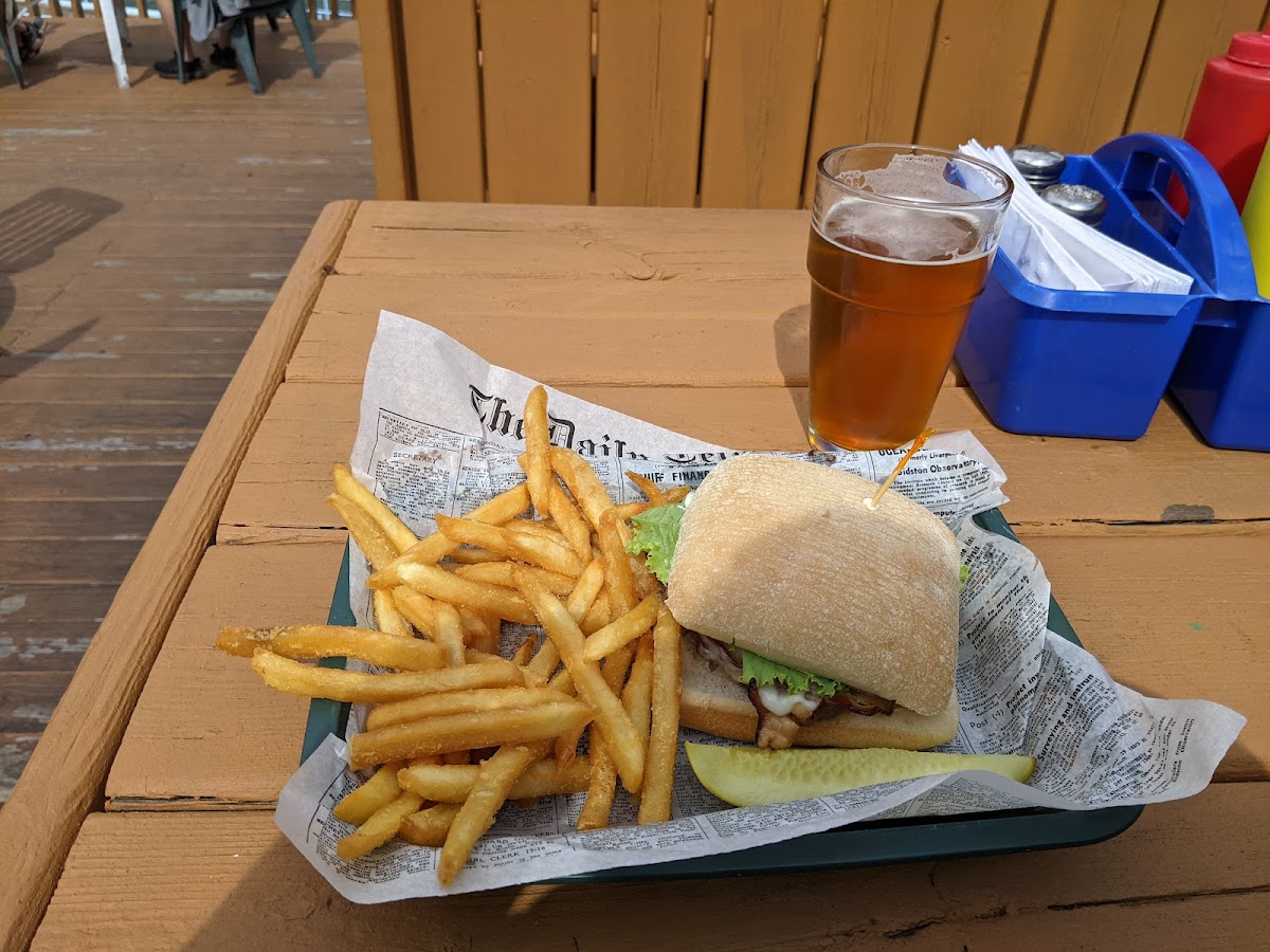 Great atmosphere. Staff was friendly and fast. Good pub style food - fries and onion rings were excellent. The vibe on the deck at sunset was fantastic.
